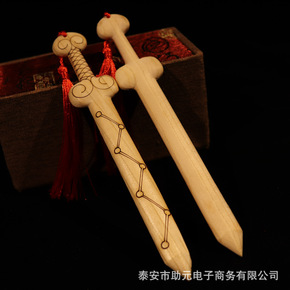 厂家批发18cm厘米七星桃木剑整木雕刻 木雕工艺品...