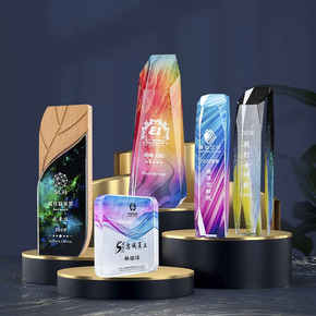 创意水晶奖杯制作奖牌授权牌实木奖座刻字企业团队年会...