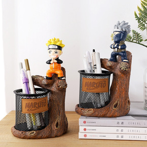日漫卡通人物摆件桌面收纳笔筒创意学生礼物金属网格笔...
