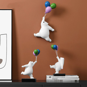 北欧创意气球熊摆件壁饰树脂儿童房间客厅桌面玄关家居...