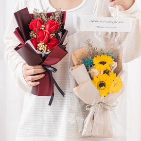 跨境玫瑰花香皂花七夕情人节礼物文具店地推创意同学送...