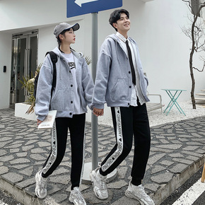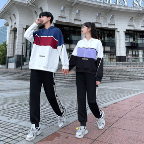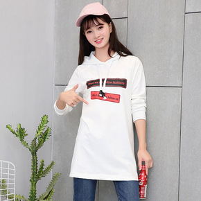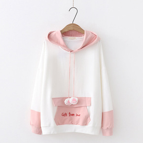 初中生高中生秋季清新甜美口袋刺绣爱心字母连帽长袖卫...