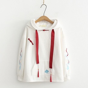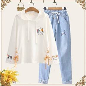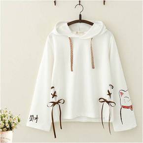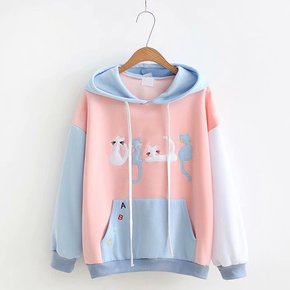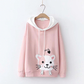 初中生高中生春装新款学院风清新刺绣小猫帽衫连帽卫衣...