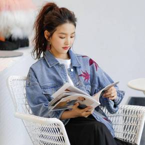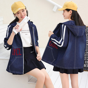 牛仔外套少女春秋装2021新款初中学生韩版小清新刺...