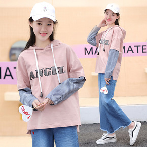 初中生高中生秋季清新可爱套头长袖卫衣假两件打底女学...