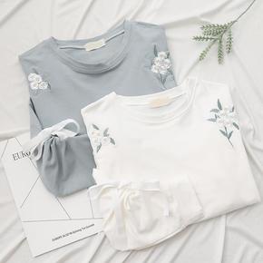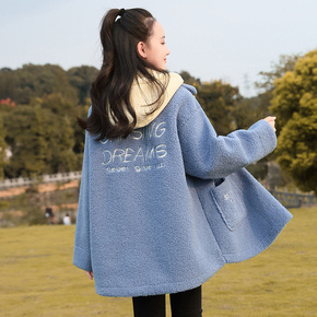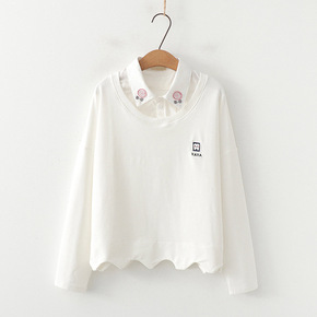 初中生高中生秋季新款甜美刺绣图案翻领假两件毛圈长袖...