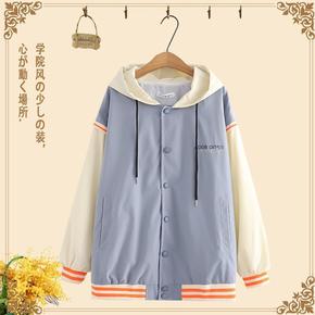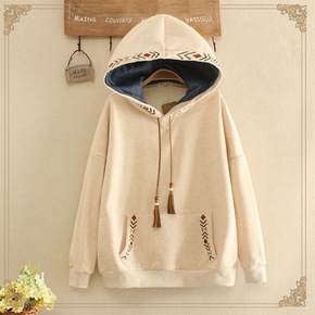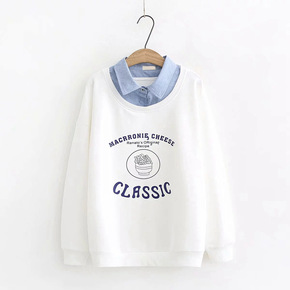 初中生高中生秋装新款日式森女印花套头假两件毛圈卫衣...