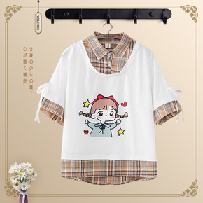 夏季新款甜美大童薄款短袖初中生少女百搭宽松高中生假...
