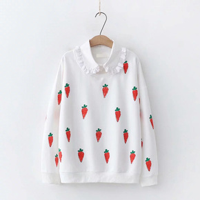 初中生高中生春装新款甜美学院风胡萝卜花边翻领卫衣学...