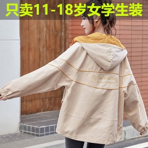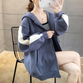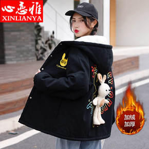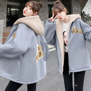 连帽加绒加厚外套女2021新款秋冬初中学生宽松韩版...