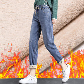 加绒加厚牛仔裤少女冬装2021新款初中高中学生韩版...