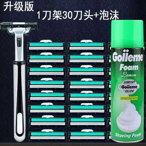 吉利剃须刀手动刮胡刀老式刀片双层刀头男士洗漱清洁水...