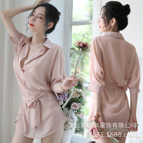 性感睡衣女夏季长款雪纺衬衫情趣内衣韩版衬衣透视装浴...