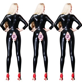 欧美情趣内衣 漆皮镂空长连体衣夜店演出服机车服67...