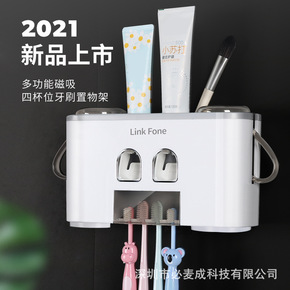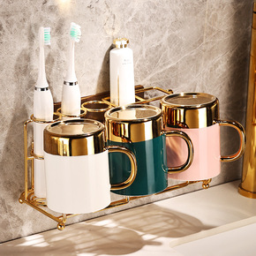 牙刷置物架免打孔磁吸式漱口杯刷牙杯壁挂卫生间收纳自...
