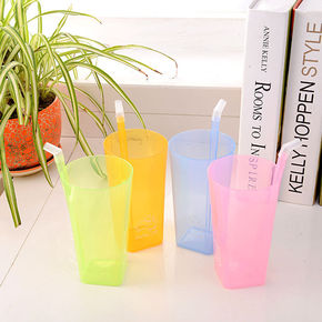 透明塑料吸管杯果汁杯冷水杯冷饮杯子刷牙杯儿童喝水杯...