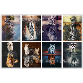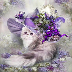新款5d钻石画外贸饰品摆件紫帽猫diy钻石十字绣东...