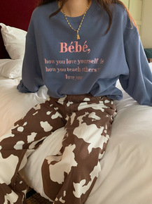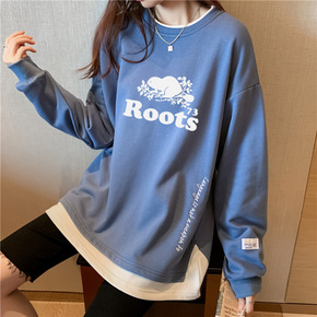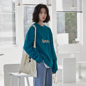 2022春季新款韩版字母刺绣慵懒BF上衣宽松圆领长...