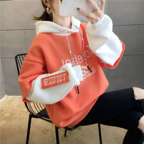 秋冬季加绒加厚卫衣女ins宽松百搭印花女装2021...