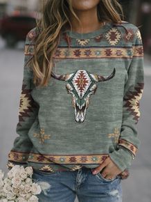 2021欧美外贸新款女装 复古西部民族几何印花 女...