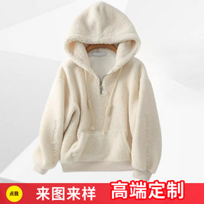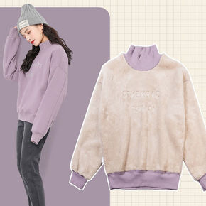 羊羔绒卫衣女冬季新款半高领套头加厚宽松韩版外套加绒...