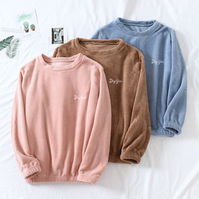 珊瑚绒睡衣上衣单件女冬装男情侣加厚加绒保暖暖暖衣法...