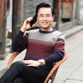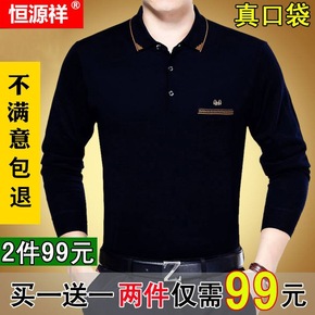 恒源祥长袖t恤男桑蚕丝带领中老年纯棉爸爸装秋季宽松...