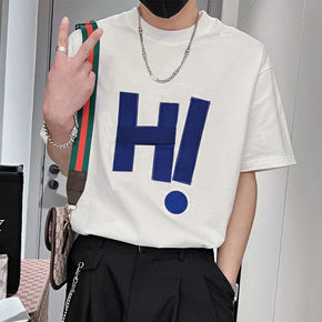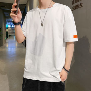 棉短袖t恤男夏季圆领修身ins白色运动半袖潮流简约...
