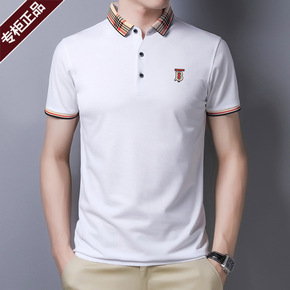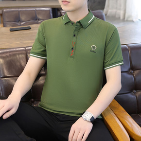 冰丝短袖t恤男士夏季薄款丝光棉半袖带领衣服有领帅气...
