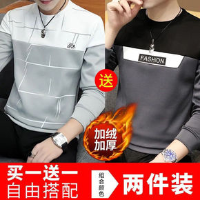 打底衫不起球秋冬季男士长袖恤加绒加暖卫衣男小上衣服...