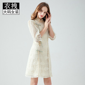 2022夏季新款法式泡泡袖立领蕾丝绣花改良旗袍中长...