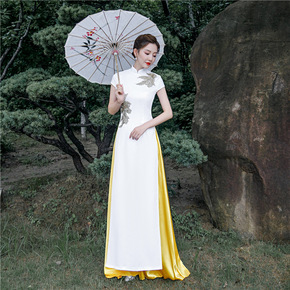 走秀旗袍2022新款年轻加长款时尚高端舞台演出服女...