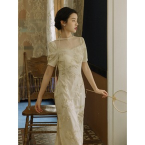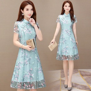 旗袍改良版连衣裙女夏季2022年新款气质网纱刺绣遮...