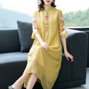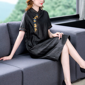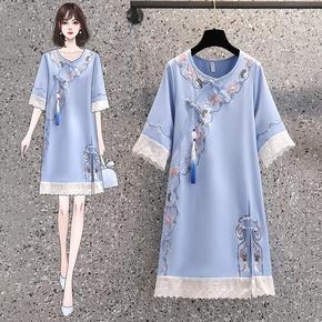 民族风妈妈连衣裙女夏装时尚大码高端气质中年改良汉服...