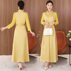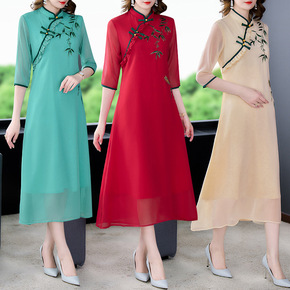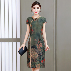 2022夏季新款阔太太时尚气质改良旗袍裙中老年妈妈...