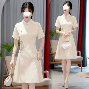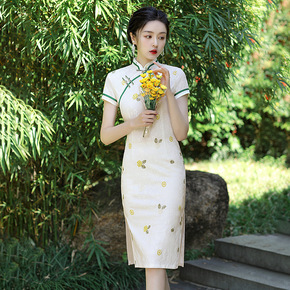 2022年新款夏季小个子显高复古改良版旗袍少女刺绣...