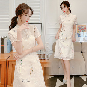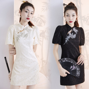 旗袍2022年新款短款复古蚀骨年轻款少女日常蕾丝改...