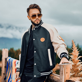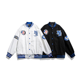 美式拼接秋季港风男女式情侣飞行服刺绣立领宽松型棒球...