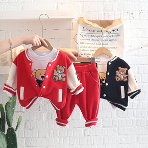 包邮Yikids男童春装男宝宝时尚绣花熊棒球服外套...