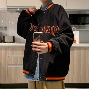 季灯芯绒外套男ins港风宽松字母刺绣夹克韩版潮流学...