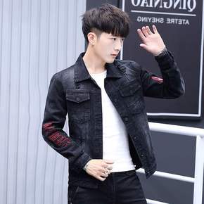 季刺绣外套男韩版潮流帅气百搭牛仔夹克学生宽松bf风...