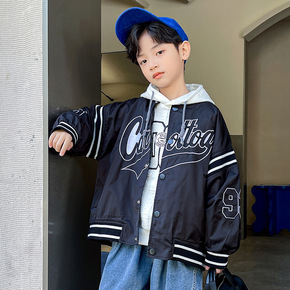 春儿童黑色棒球服外套男童2022新款中大童韩版童装...