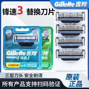 吉列锋速3敏锐三层刀片手动剃须刀套装刮胡刀男士替换...