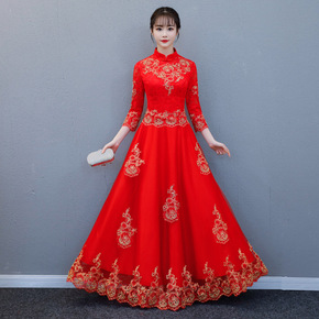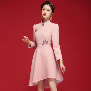2021秋冬新款改良年轻旗袍裙时尚优雅气质长袖不规...