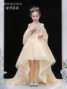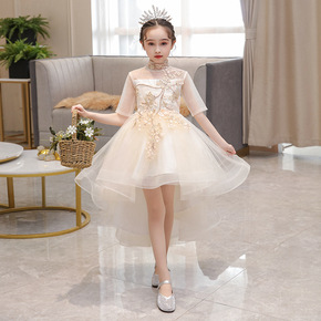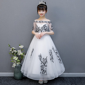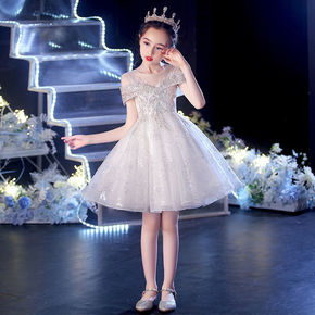 女童主持人小女孩儿童走秀晚礼服裙公主裙花童钢琴演出...
