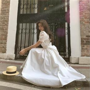2017春夏新品婚纱礼服半身前短后长性感拖地欧根纱...