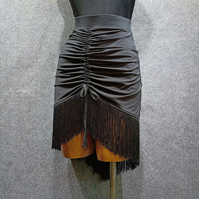 又见梵羽拉丁舞蹈服女成年抽褶系带包臀前短后长流苏半...