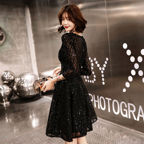 黑色晚礼服裙女2021新款气质宴会年会小礼服年会平...