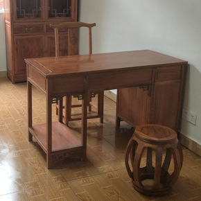 新中式书桌椅组合老榆木书法写字台家用黑胡桃木办公桌...