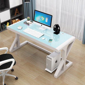 电脑台式桌简约现代家用单人桌子钢化玻璃游戏用卧室电...